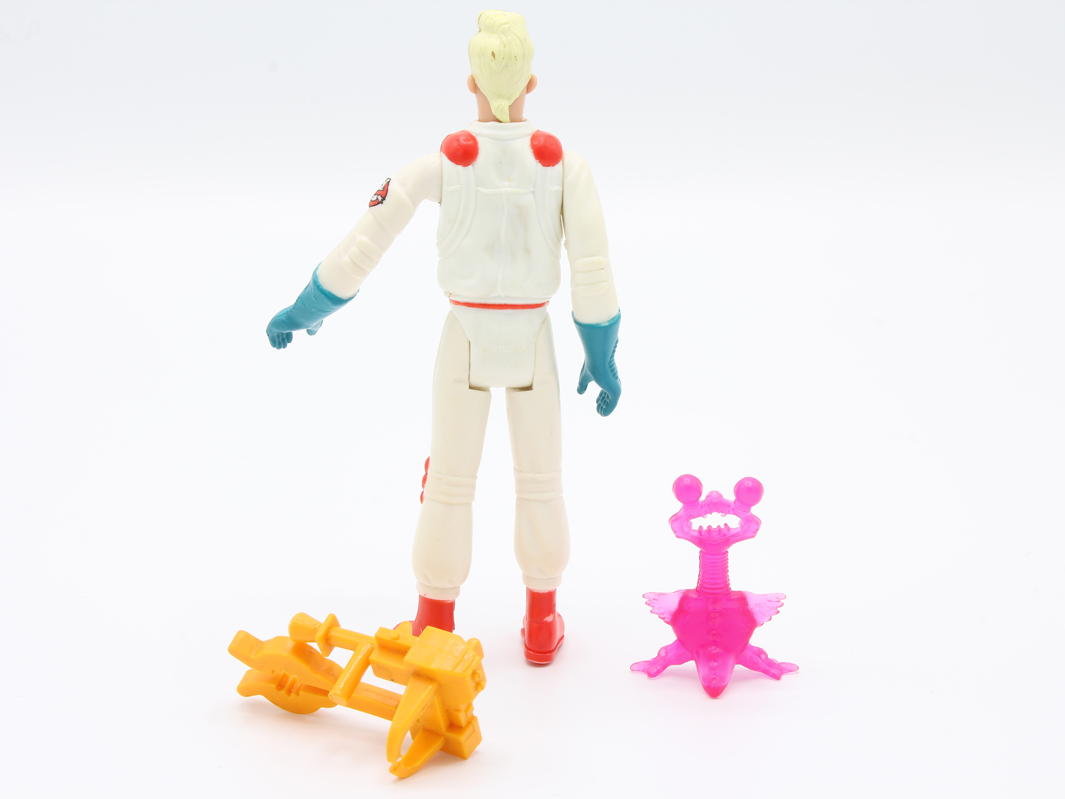 Original Egon Spengler (Fright Features) action figure from 1988, of the vintage The Real Ghostbusters toyline. Complete with Terror Tweezer claw and Soar Throat Ghost, in good condition.