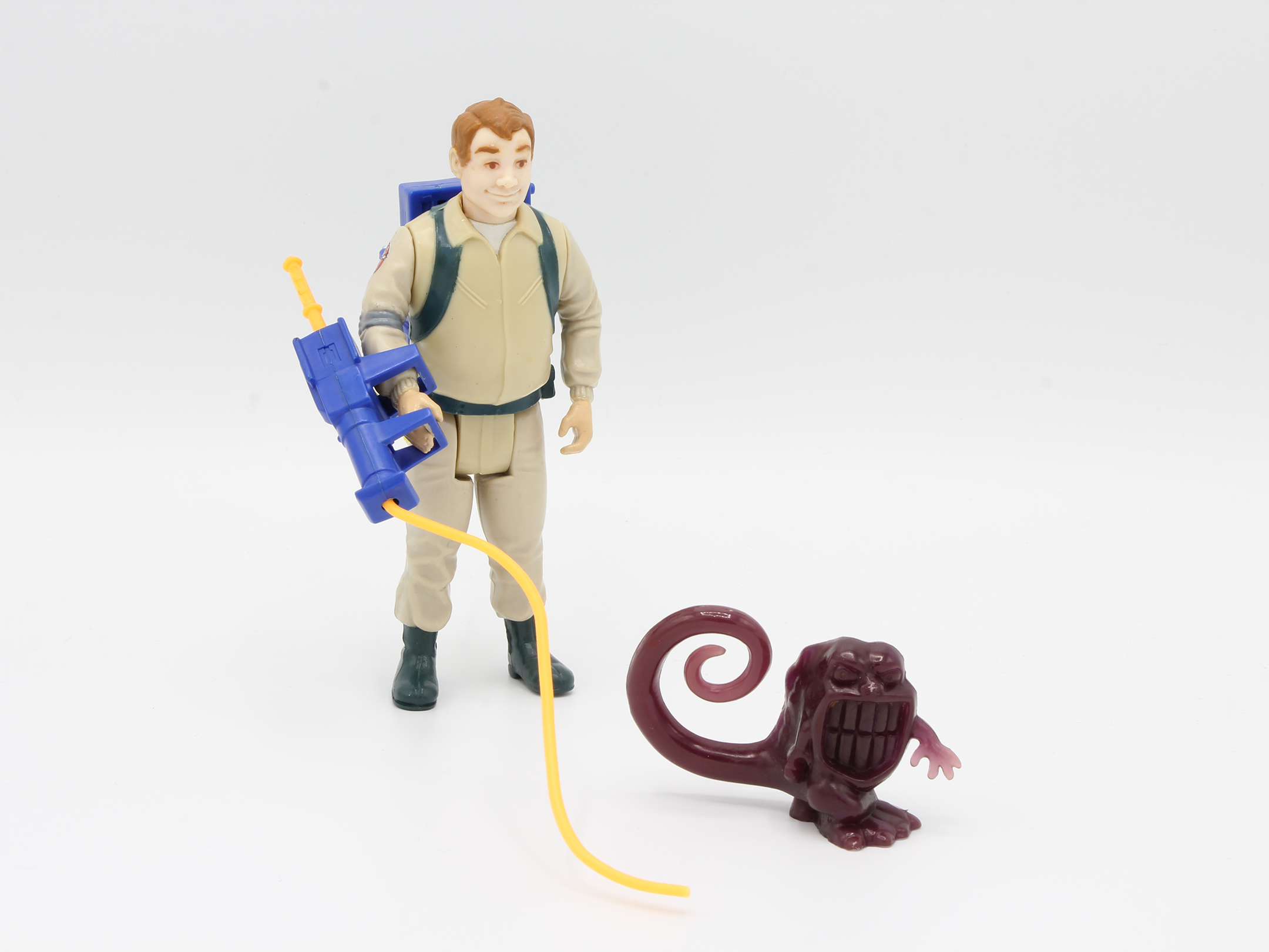 Original Ray Stantz (Classic Hereos) action figure from 1986, of the vintage The Real Ghostbusters toyline. Complete with Nutrona Blaster, Proton Pack and Wrapper Ghost. Overall in good to very good condition, but a small piece of the laser beam is missing (see the last two photos).